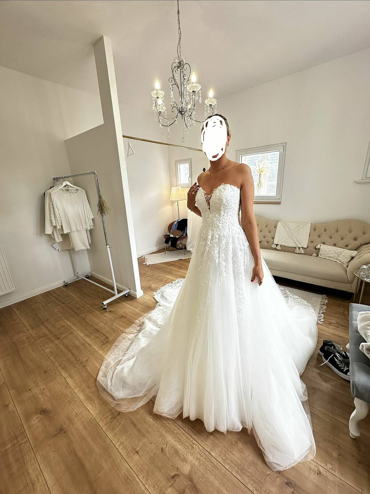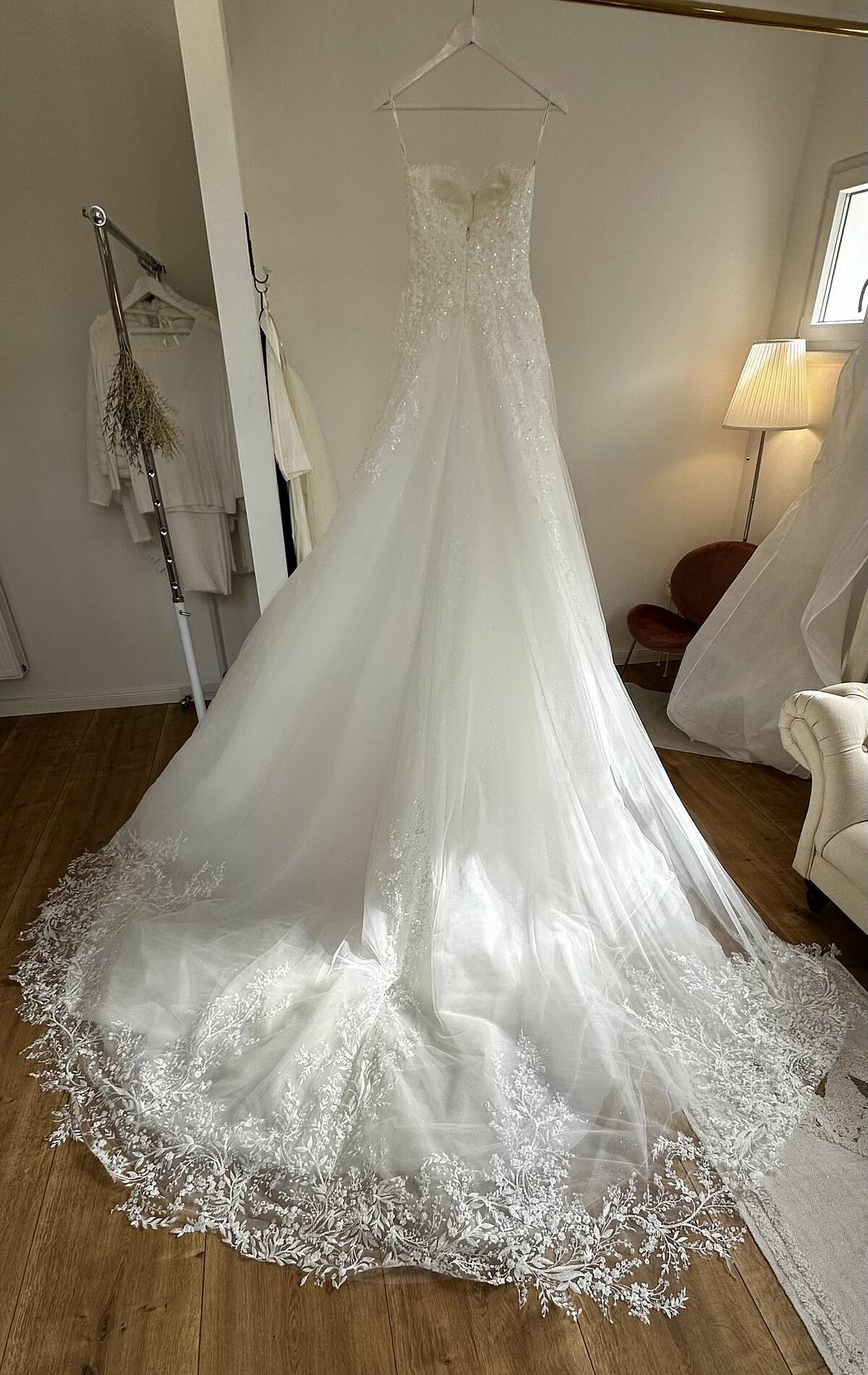 • Ungetragen – nur bei der Abholung im Brautladen anprobiert (siehe Bilder)