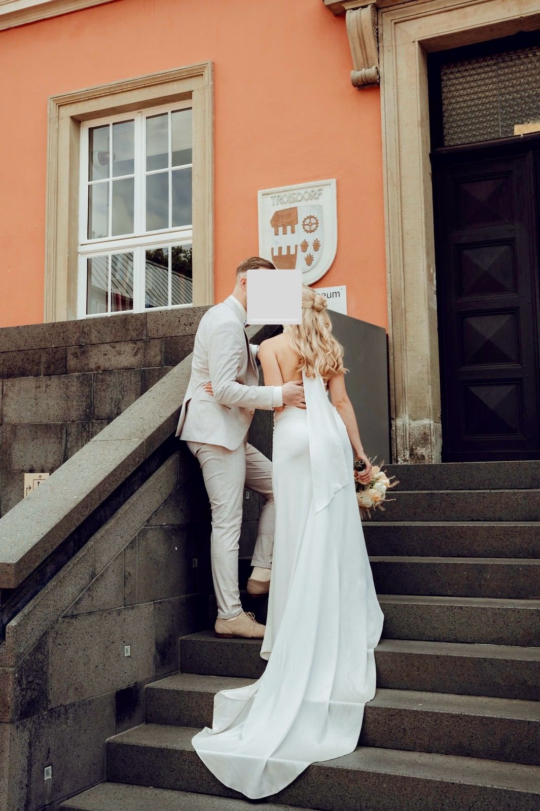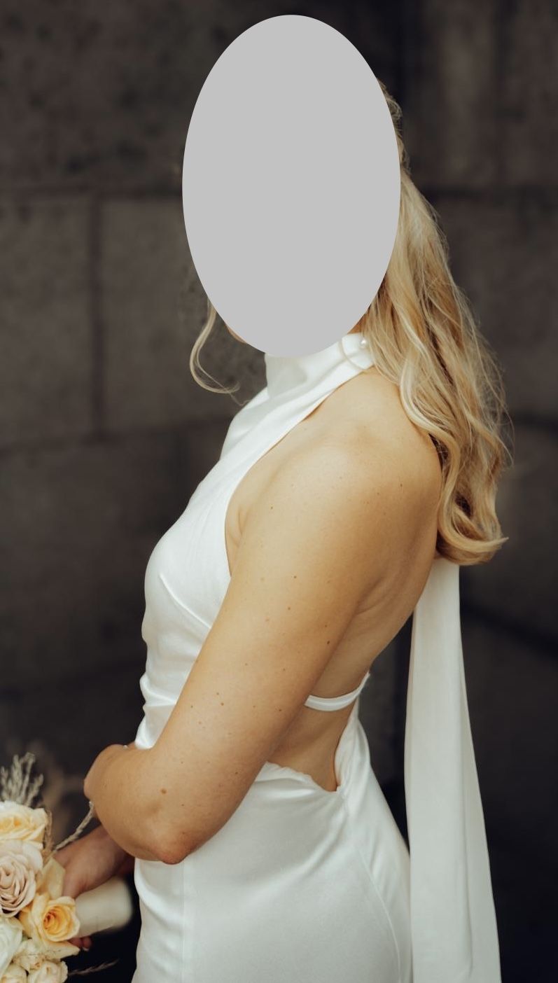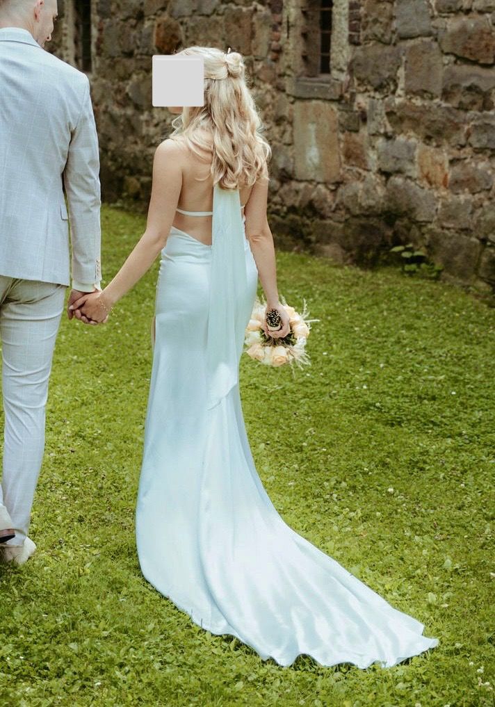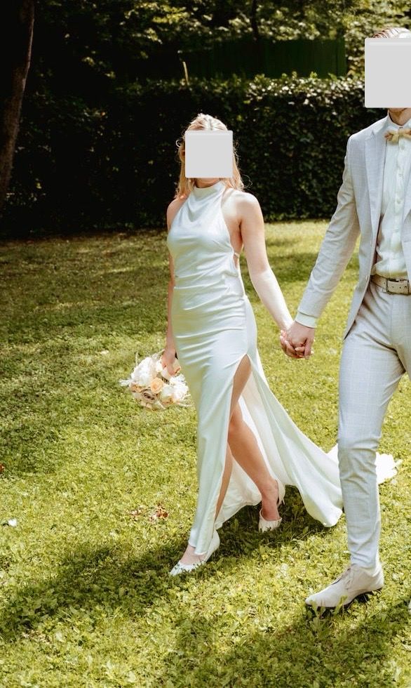 Ich habe mir ein Brautkleid aus Seide maßanfertigen lassen, damit sich der Stoff an diesem besonderen Tag gut auf der Haut anfühlt und komfortabel ist. - DAS HIGHLIGHT: Sensationell tiefer V-Ausschnitt am Rücken. - Elegante, raffinierte Silhouette: Raffung am Bauch, die kaschiert. - Anpassbar: Rücken: Verstellbare, Nacken: Zwei Enden werden zur Schleife gebunden. - Körpergröße 1,65 m, Absatz 7 cm - professionell gereinigt Abholung und Anprobe oder Versand möglich. Privatkauf, daher keine Haftung oder Gewähr. Keine Rücknahme oder Garantie.