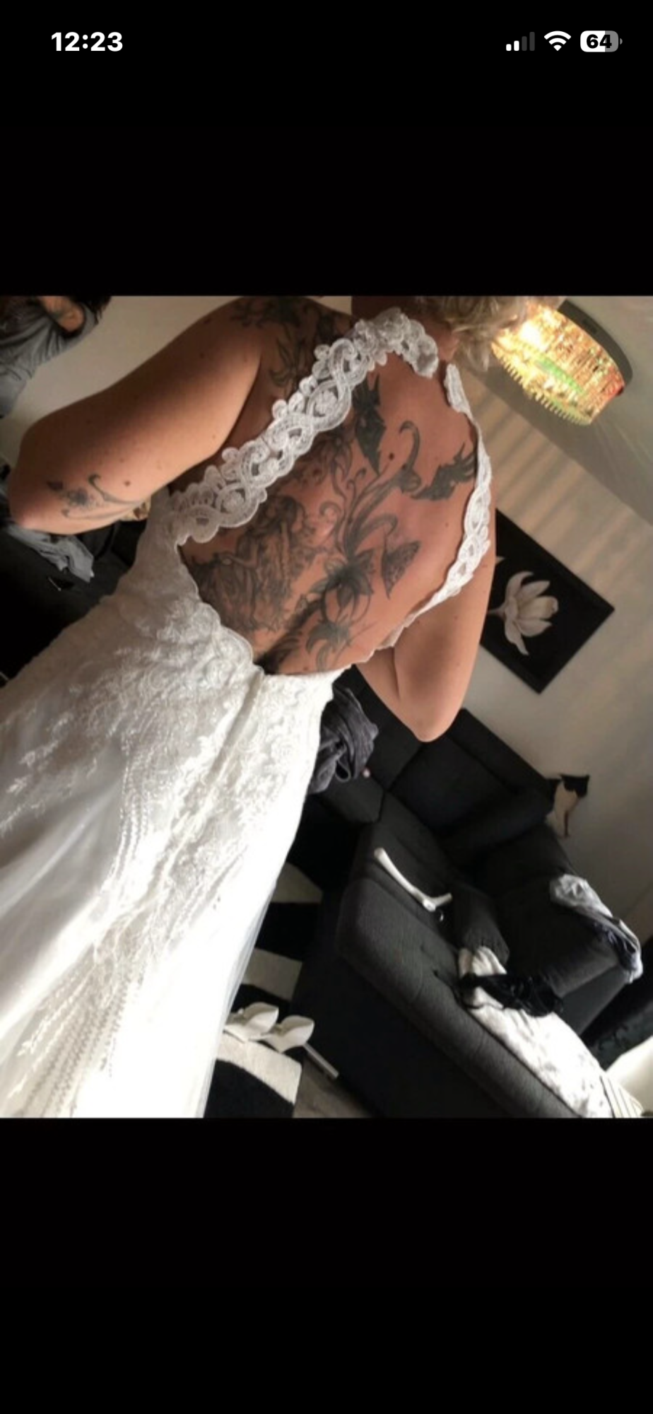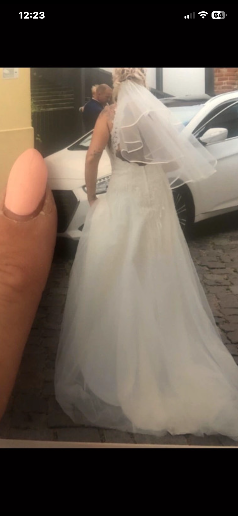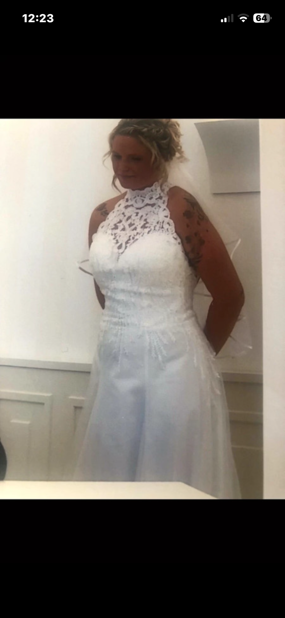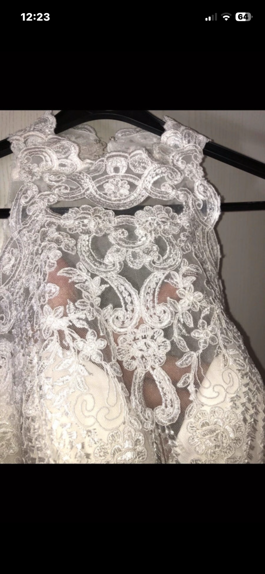 Hallo ..... zu verkaufen ist mein tolles Brautkleid 38/40, Elfenbein, Kleid ist aus Spitze ( oben durchsichtiger Stoff, komplett kleine Pailetten, Glitzer ), Unterkleid ist aus komplett Glitzer Tüll( dadurch sehr leicht zum tragen), nur ein kleiner Unterrock, hinten mit Schleppe ( die man dann hochbinden kann zum Tanzen ), vorne gekürzt, großer Rückenausschnitt aus Spitze, übern Hals Schließbar mit Knöpfen, unterer Teil Reißverschluss, wurde gereinigt, kann gerne verschickt werden!!!! Paypal oder Überweisung vorhanden !!! Kurzer Schleier in Elfenbein gibt es noch dazu