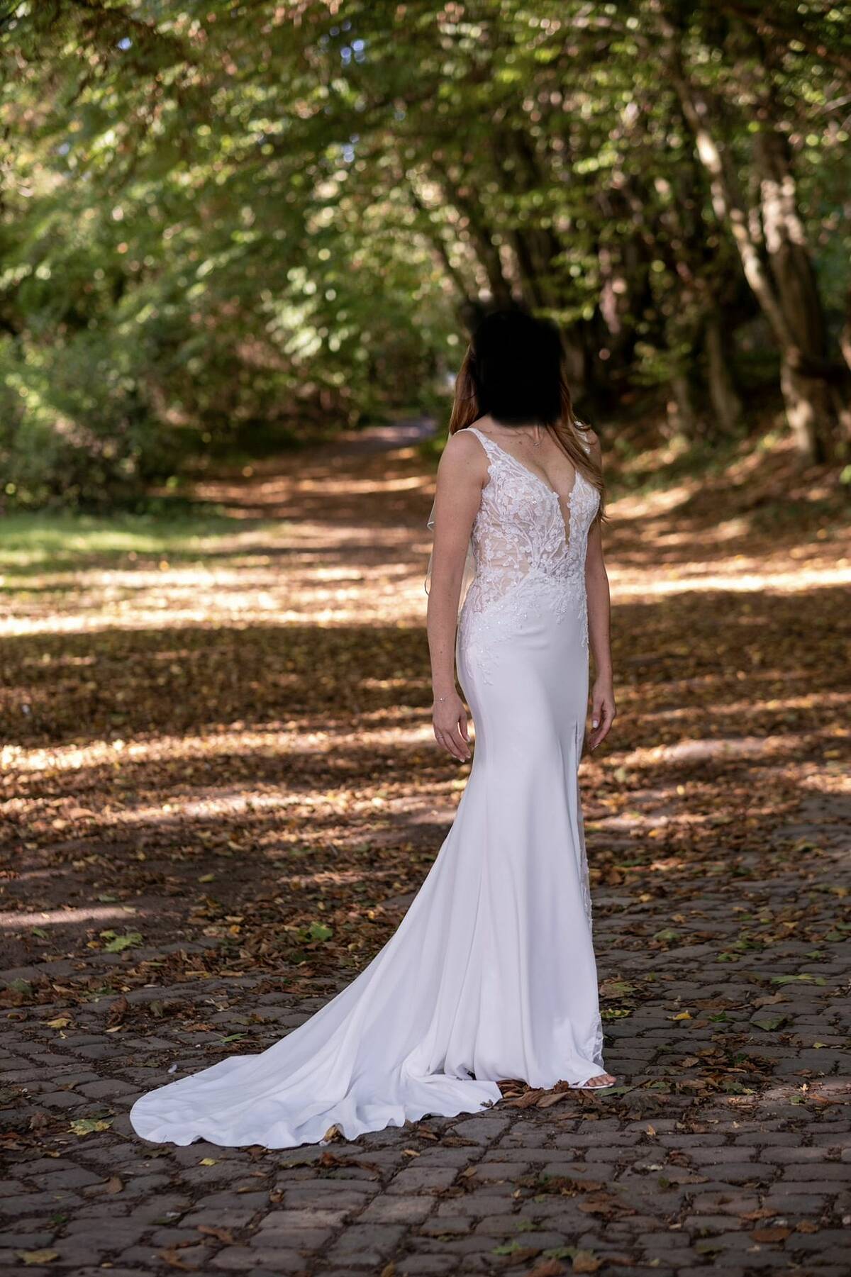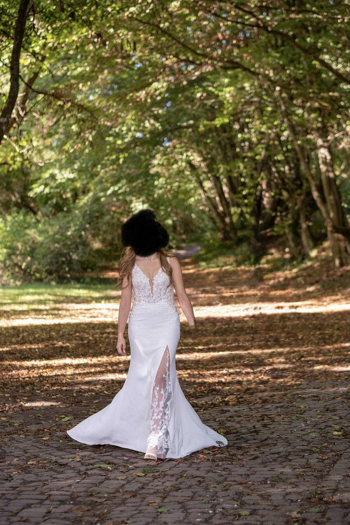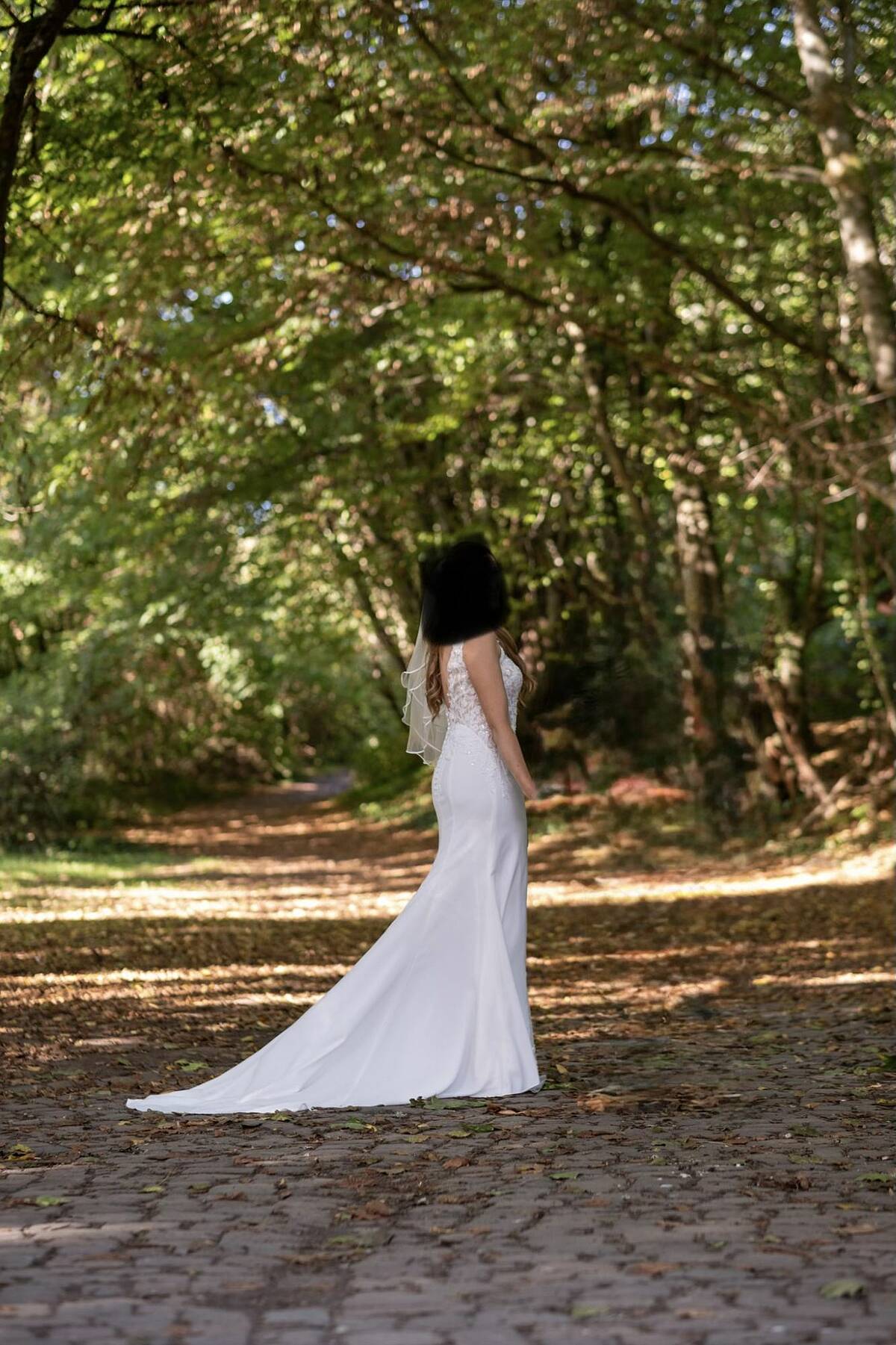 Verkaufe mein wunderschönes Hochzeitskleid von Maria Ciraulo in Größe 40, Farbe ivory. Das Kleid besticht durch folgende Details: • Eleganter, schmeichelhafter Schnitt • Traumhafte Schleppe • Rückenausschnitt mit süßer Knopfleiste zur Zierde • Reißverschluss hinten • Stickerei-Details aus Spitze am Schlitz als absoluter Hingucker Ich habe es nur für wenige Stunden getragen - zwei Stunden beim Standesamt und eine Stunde für die Hochzeitsfotos. Es ist daher in einem tadellosen Zustand und bereit für den nächsten großen Tag. Das Kleid wurde natürlich professionell gereinigt. Der Neupreis liegt bei 1.800€ ohne Anpassungen. Ich musste nur die Träger und den Ausschnitt um ein ein paar Millimeter enger machen/kürzen. Ich bin 1,80 groß und trage Schuhe mit 6cm Absatz. Genaue Maße und noch mehr Fotos gerne auf Anfrage.