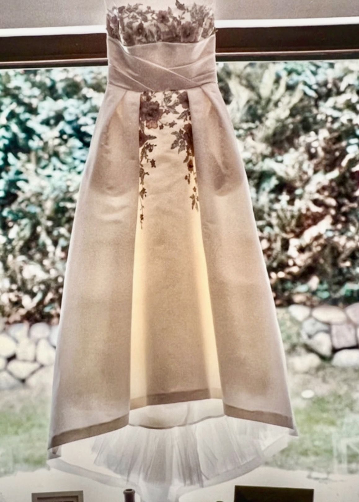 1) Die „Etikettengröße“ oder „Label Size“, die auf dem Kleid vermerkt ist und auf dem Etikett steht.