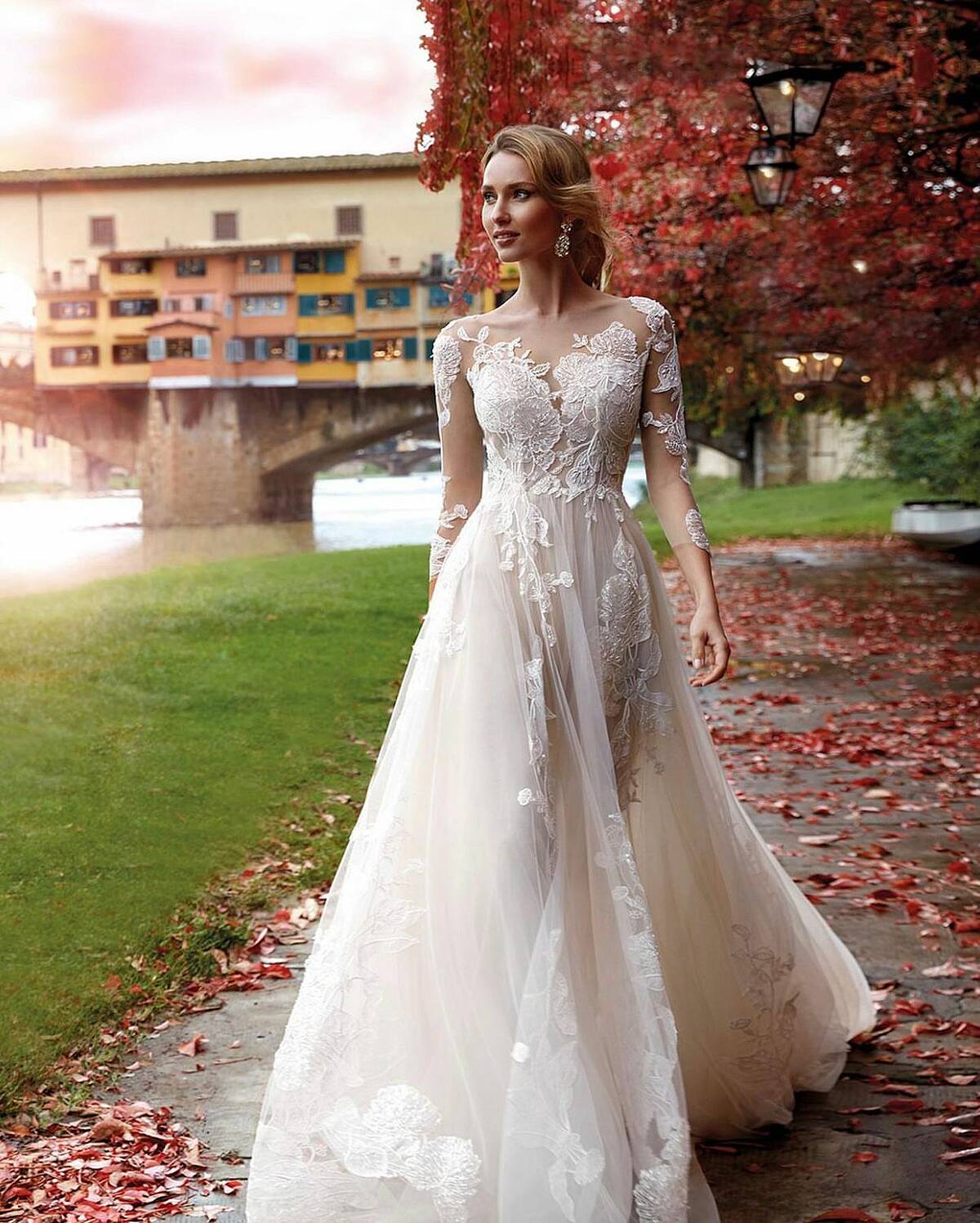 Verkaufe mein wunderschönes Brautkleid der Marke Nicole Milano in ivory/ champagner. Es hat eine ganz besondere Spitze mit funkelnden Pailletten- und Perlenapplikationen.